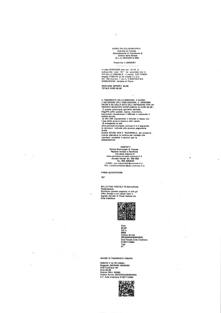 Il verbale contraffatto, secondo quando si legge sul comunicato, invita tramite un qr code al pagamento immediato, sul canale Paypal, di una presunta sanzione. Tali documenti sono completamente privi di validitร giuridica e indirizzati ad una attivitร fraudolenta per lโestorsione illecita di denaro.ย